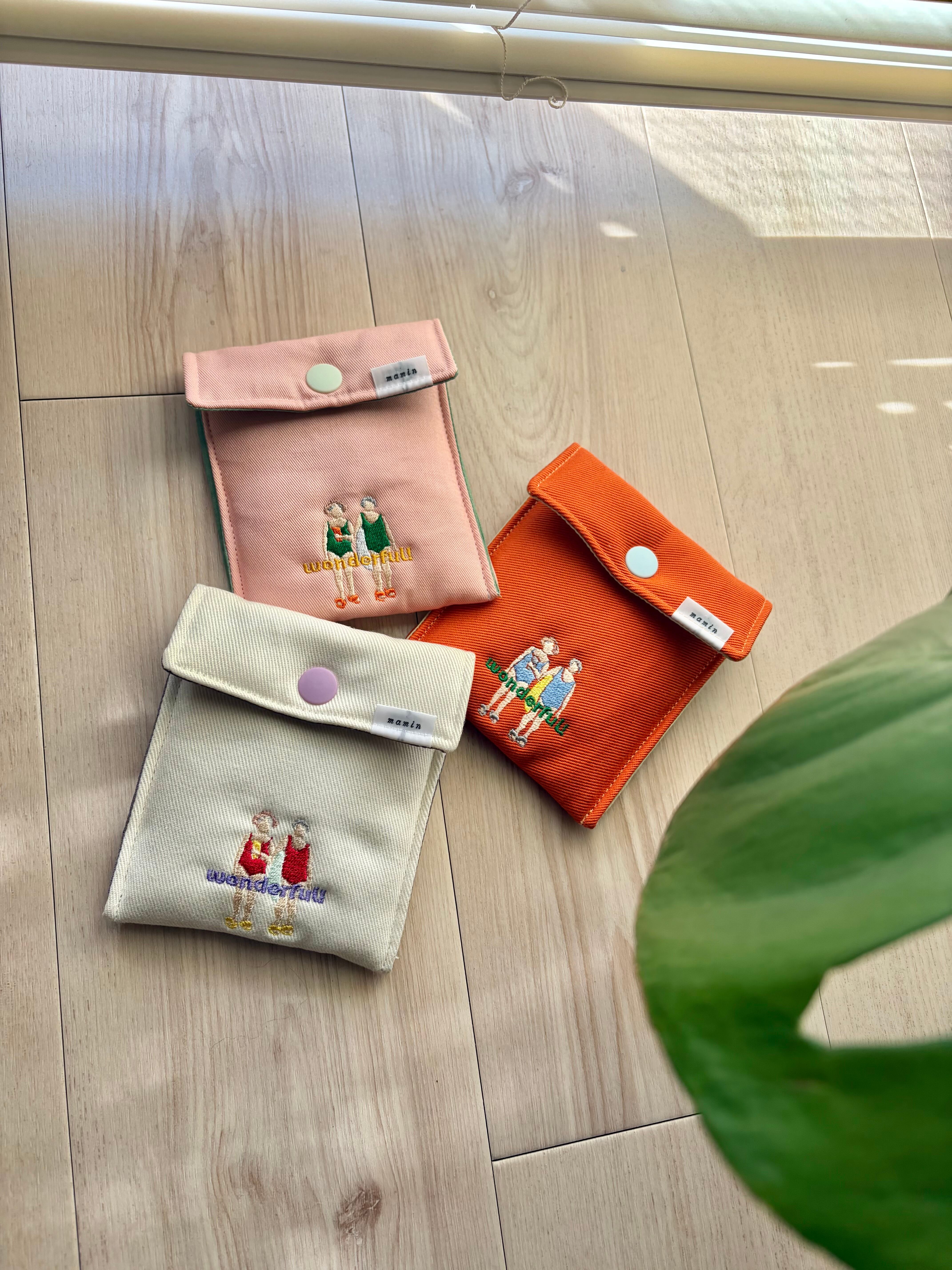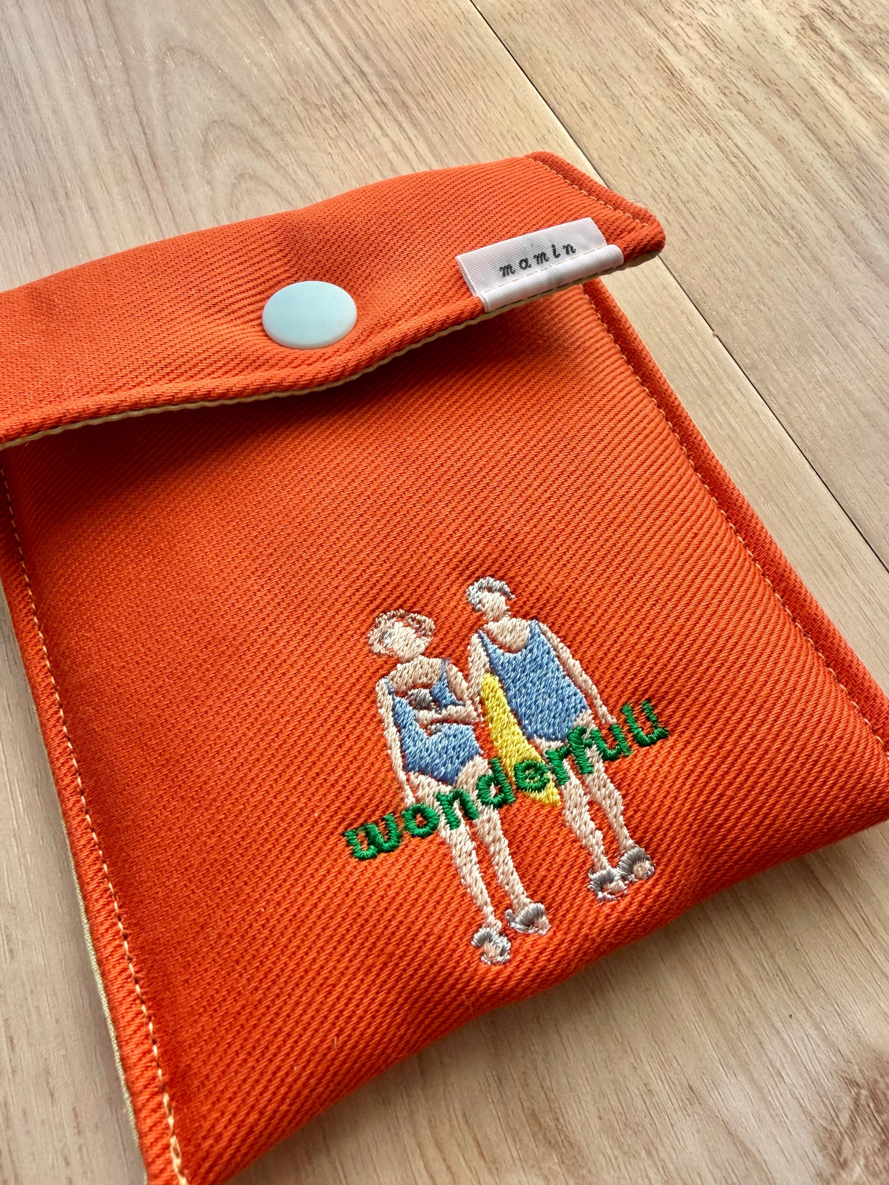 数量限定 刺繍キルティングポーチ(オレンジ